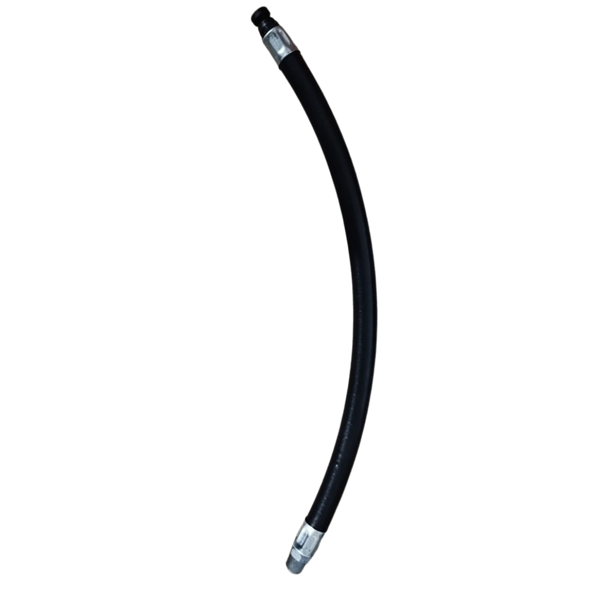 A Mangueira de Descarga para Extintor de Pó é o componente flexível responsável por conduzir e direcionar o agente extintor Pó Químico Seco (PQS) (Bicarbonato de Sódio, Monofosfato de Amônia, etc.) para o foco do fogo.