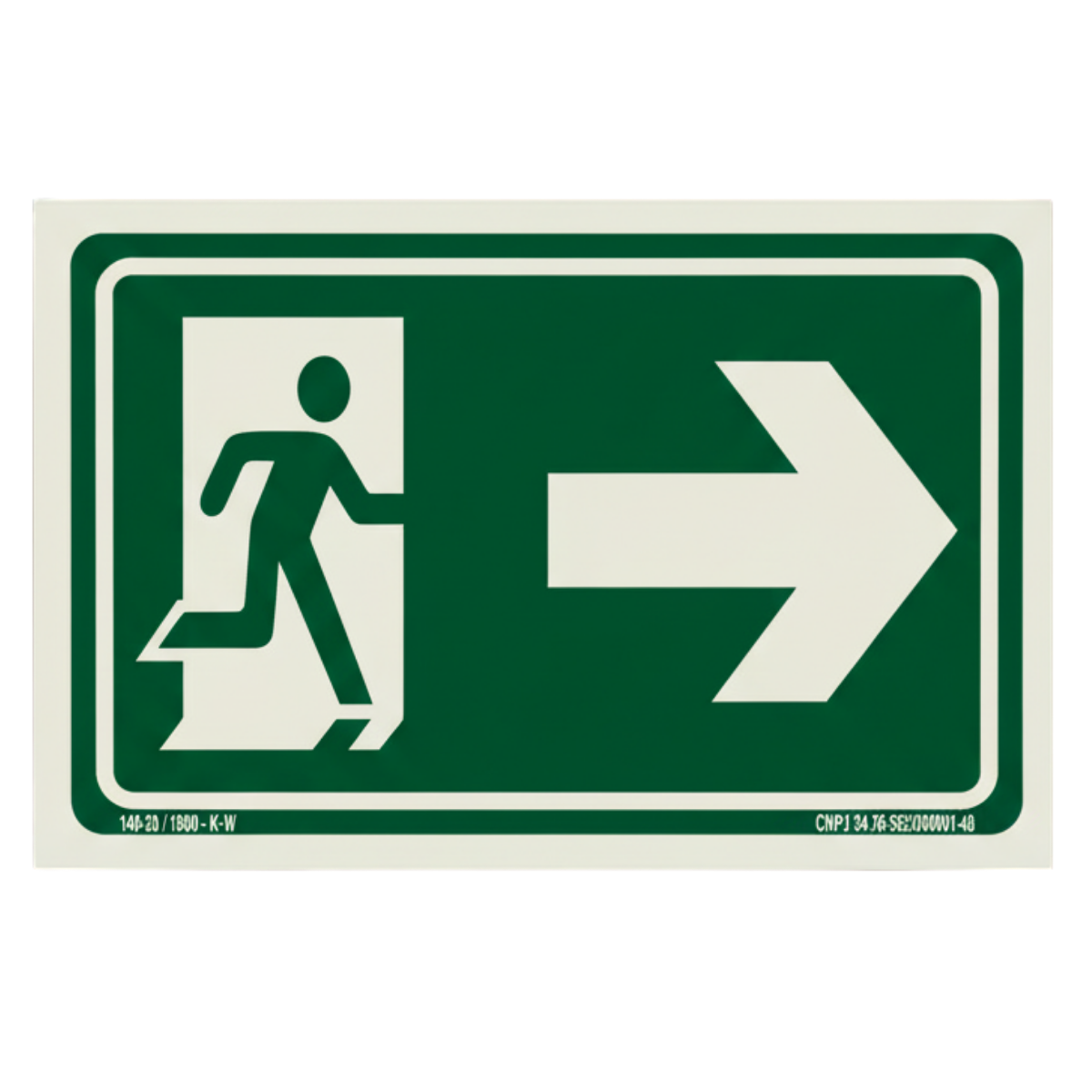 O material fotoluminescente desta placa é projetado para absorver a luz ambiente e emitir um brilho intenso no escuro, assegurando que a rota de fuga permaneça totalmente visível e funcional em casos de emergência com falha de energia, em conformidade com a ABNT NBR 13434.
